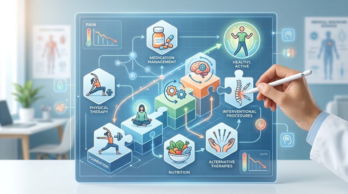 A multimodal pain management plan combines multiple treatment strategies including medications, physical therapy, psychological support, and lifestyle modifications to address chronic pain more effectively than any single approach. This comprehensive method targets pain through different biological pathways, reducing reliance on opioids while improving function and quality of life. Success requires coordination between healthcare providers and active patient participation in treatment decisions.